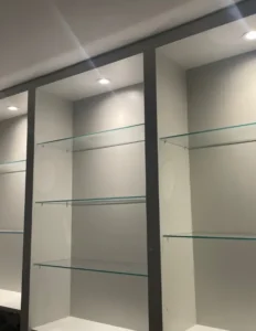 Glass shelves supplied & installed for kitchens, bathrooms, living spaces, and commercial interiors. We fabricate and install all shelf types — including toughened, polished-edge, and bespoke cut-to-size glass — using secure fixings and precise installation methods for long-term strength and stability.